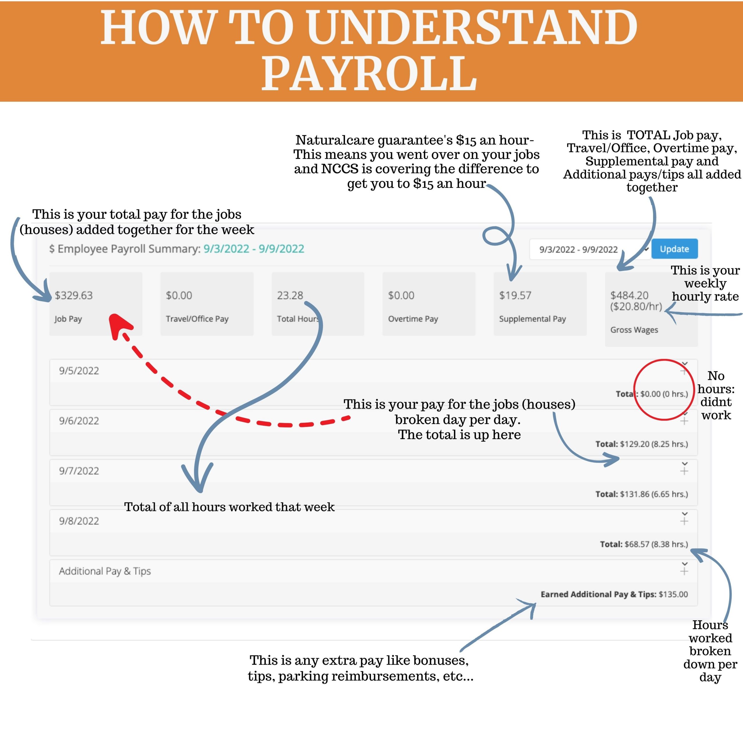 At Naturalcare, your pay is based on the total jobs (houses) you complete each week. Here’s what each section means:
